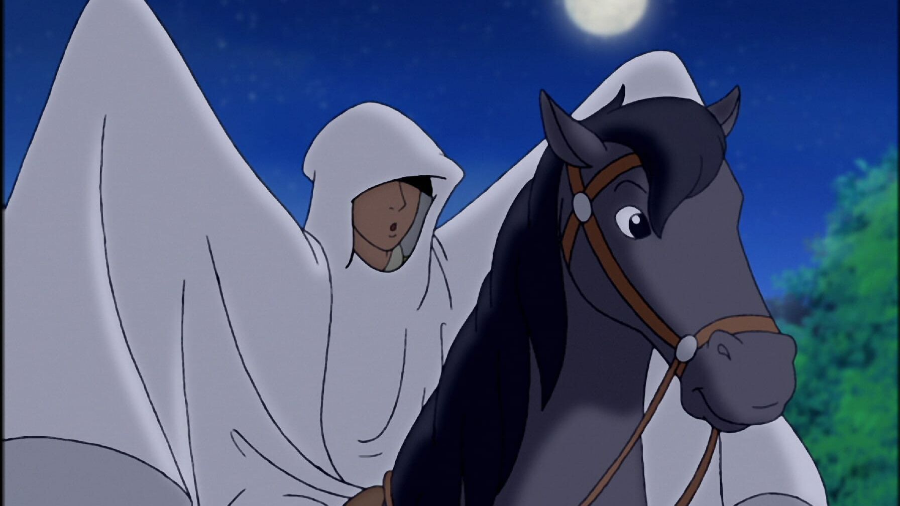 Auf dem Martinshof treibt ein Gespensterreiter sein Unwesen und vergrault die Ferienkinder mit schaurigem Geheule. Bibi und Tina wollen herausfinden, wer dahintersteckt. Die beiden Freundinnen verfolgen das Gespenst, doch sie erwischen nur seinen weißen Umhang. Damit aber haben sie eine erste Spur und tüfteln einen Plan aus.