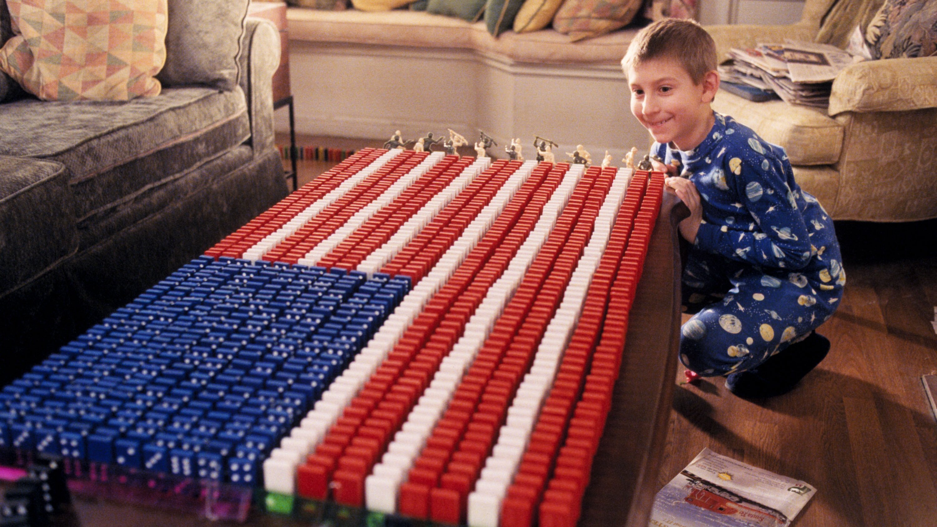 Malcolms Klasse hat bei einem Experiment den eigenen Klassenraum verseucht. Nun werden die hochbegabten gemeinsam mit den anderen Kindern unterrichtet. Ungewollt hetzen sie ihre neuen Mitschüler und Mitschülerinnen gegeneinander auf. Dewey ist krank. Er vertreibt sich seine Zeit mit dem Aufstellen von Dominosteinen. Bald hat er einen beachtlichen Parcours quer durchs Haus gebaut. Nur schwer kann er seinen Vater davon abhalten, das Gebilde zum Einsturz zu bringen.