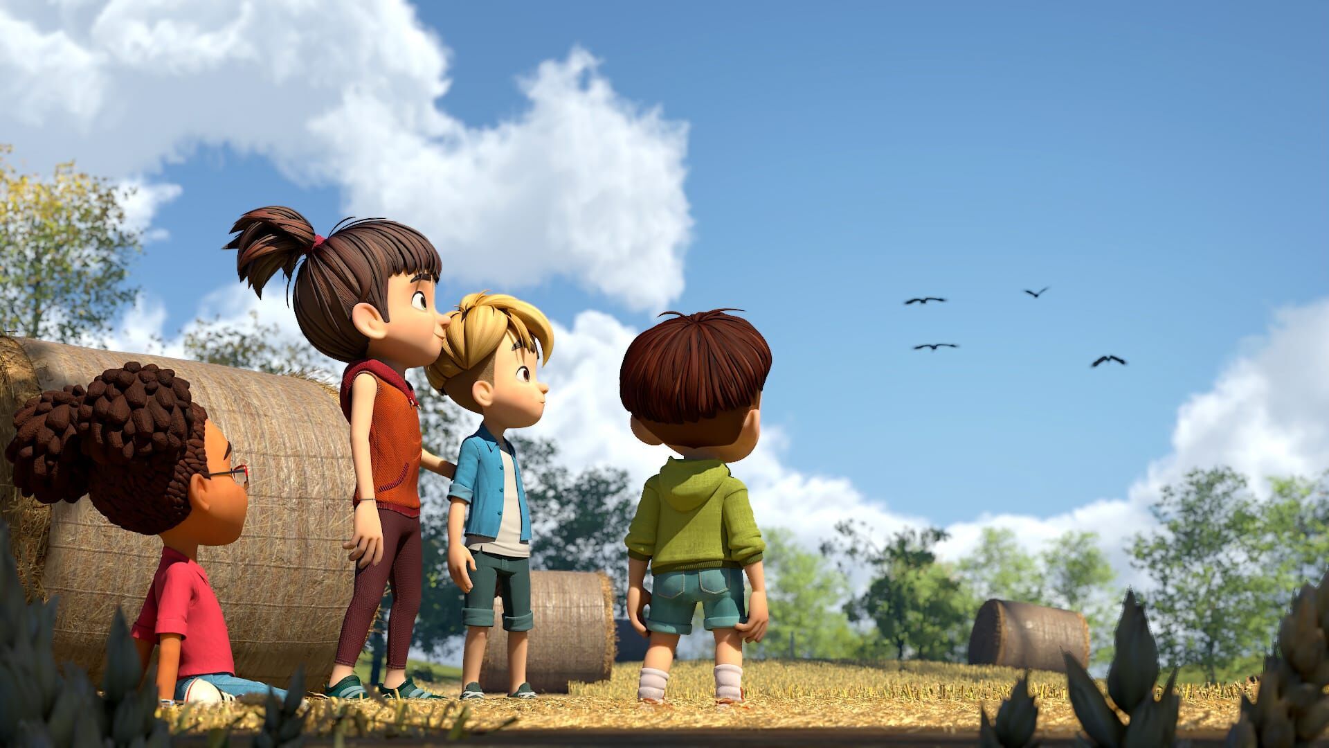Au beau milieu des champs, près d'une vaste forêt et d'un joli ruisseau, se trouve le village de Bellefontaine. Raphaël, Lina, P'tit Pied et Grande Perche y vivent et forment une joyeuse bande d'amis. Débordants d'imagination, ils remplissent leur quotidien d'aventures trépidantes.