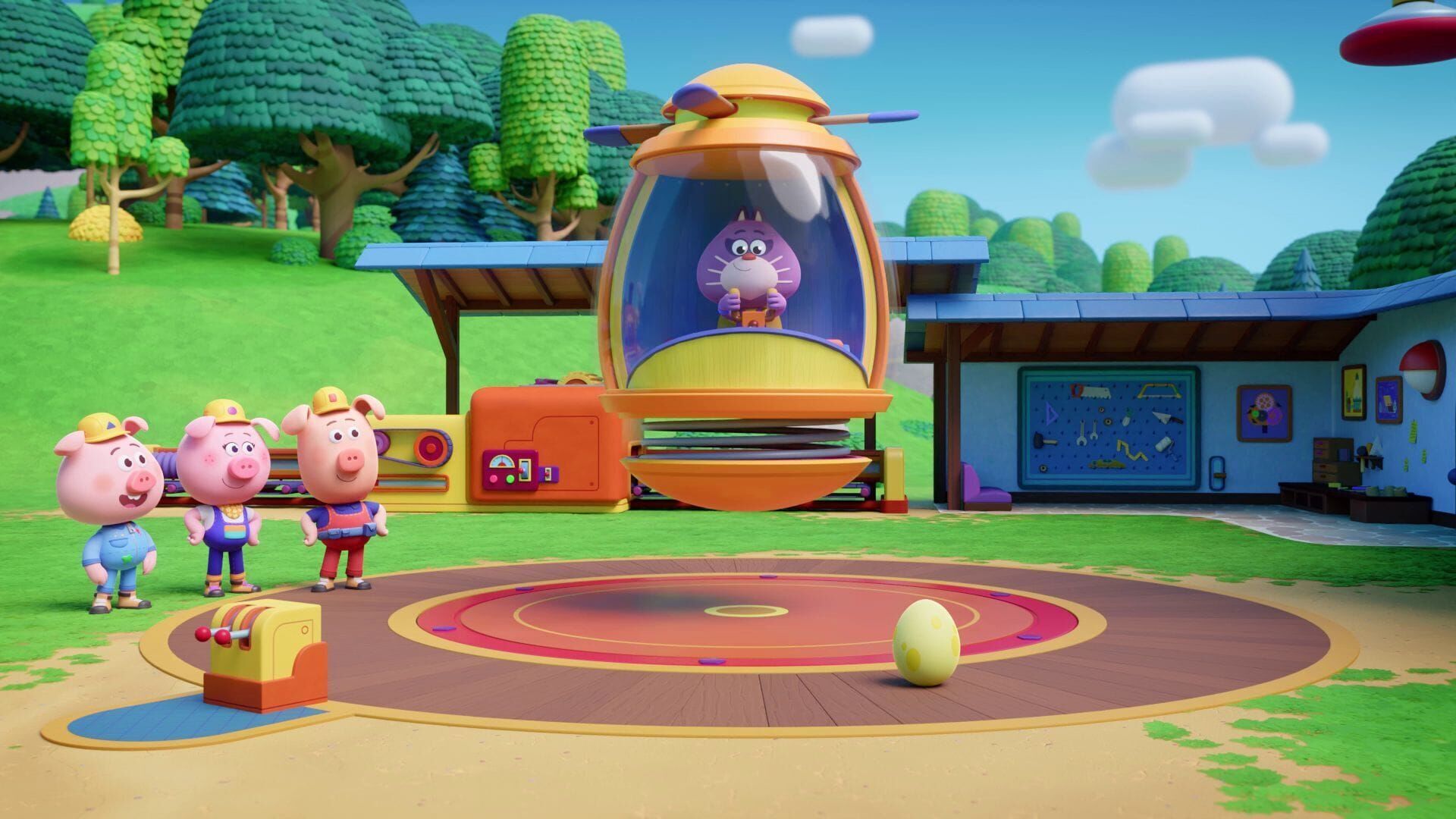 Eier-Flummi: Das Ei Sascha ist ein großer Hüpfer. Seine Freundin Holly kommt ihm kaum hinterher. Also bauen die Werkel-Ferkel für Holly einen Eier-Flummi mit Lenkrad. Nur Wilf mag die Hüpferei nicht. Durch einen kleinen Tritt von Wilf gerät der Eier-Flummi außer Kontrolle. Jetzt sind die Werkel-Ferkel erneut gefragt, denn sie müssen ihre eigene Erfindung einfangen.
