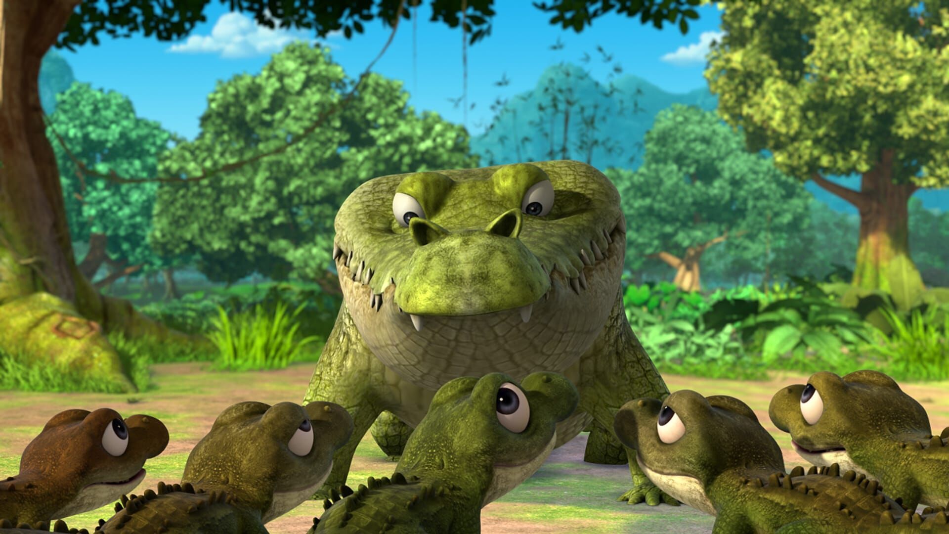 Jakala ist untröstlich, seine Söhne sind weg. Sie suchen das große Regenbogen-Krokodil, weil sie denken, diese legendäre Figur existiere tatsächlich. Mogli will helfen und sucht die Jungs. Tabaqui, der das alles mitbekommen hat, verständigt Shir Khan. Der gibt sich als Regenbogen-Krokodil mit einem langen Maul aus und freut sich auf das bevorstehende Festmahl. Gerade als der Tiger die Jungs in sein langes Maul locken will, taucht Mogli auf.