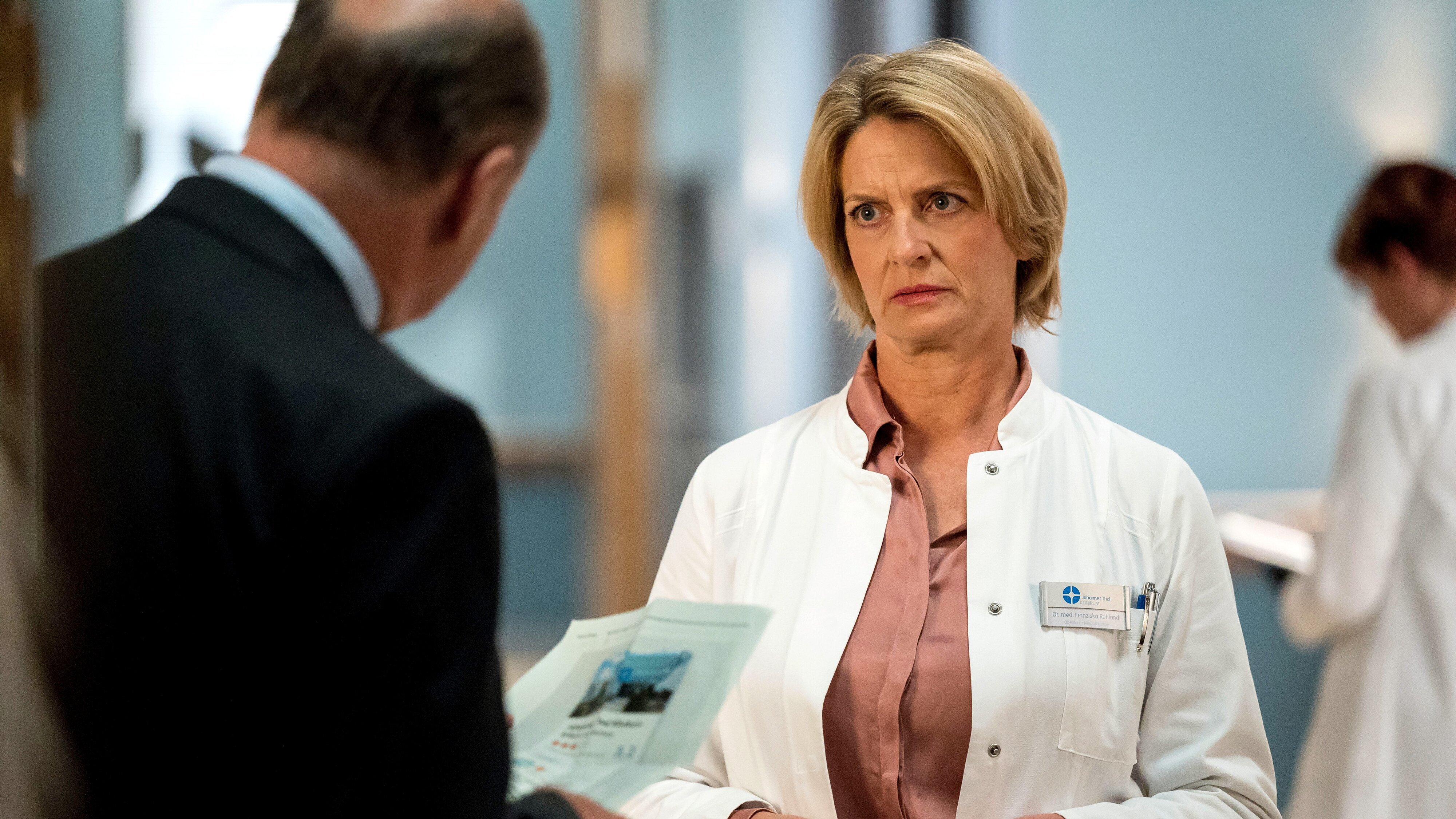 Friedrich Freitag wird nach einem Rugby-Zusammenstoß mit ausgekugelter Schulter ins Johannes-Thal-Klinikum eingeliefert. Joelma Wilde hat diffuse Schmerzen in Brust, Hüfte und Beinen. Florian Osterwald und Dr. Franziska Ruhland wollen die Symptome abklären, doch das neue Blutdruckmessgerät funktioniert nicht. Friedrich Freitag wird nach einem Rugby-Zusammenstoß mit ausgekugelter Schulter ins Johannes-Thal-Klinikum eingeliefert. Sein "Unfallgegner" ist ausgerechnet sein fester Freund Berry Höfner. Während es bei Berry schnell Entwarnung gibt, muss Dr. Rebecca Krieger Friedrichs Schulter unter Narkose reponieren. Unterdessen hat Dr. Marc Lindner im OP einen von seinen langjährigen Krebspatienten verloren, der sich zu spät für eine Operation seines Astrozytoms entschieden hat. Marc will sich nichts anmerken lassen. Doch als Berry Höfner ihm kurz darauf in der Onkologie-Sprechstunde eröffnet, dass er ebenfalls ein Astrozytom hat und keine weitere Therapie wünscht, kann Marc nicht an sich halten. Er eckt gewaltig mit Dr. Alica Lipp an! Joelma Wilde hat diffuse Schmerzen in Brust, Hüfte und Beinen. Florian Osterwald und Dr. Franziska Ruhland wollen die Symptome abklären, doch das neue Blutdruckmessgerät funktioniert nicht. Während Florian es zu reparieren versucht, untersucht Dr. Franziska Ruhland die Patientin auf herkömmliche Art weiter. Doch Joelmas Beschwerden bleiben ohne Diagnose. Als Wolfgang Berger kurz nach dieser Untersuchung eine vernichtende Online-Bewertung über das JTK entdeckt, liegt die Vermutung nahe, dass die provokante Patientin ihre Finger im Spiel hat. Dr. Franziska Ruhland stellt die junge Frau zur Rede: Macht sie den Ärzten etwas vor? Eine renommierte Ärztin hat Rebecca Kriegers Doktorarbeit gelesen und einen Artikel dazu geschrieben. Ein Exemplar mit Widmung hat sie dem Johannes-Thal-Klinikum zukommen lassen. Dr. Julia Berger will Rebecca eine Freude machen und den Artikel einrahmen. Wolfgang Berger geht einen Schritt weiter und will, dass der Artikel im Klinikum aufgehängt wird. Mit ungutem Gefühl überlässt Julia ihm das Unikat, was prompt schief geht.